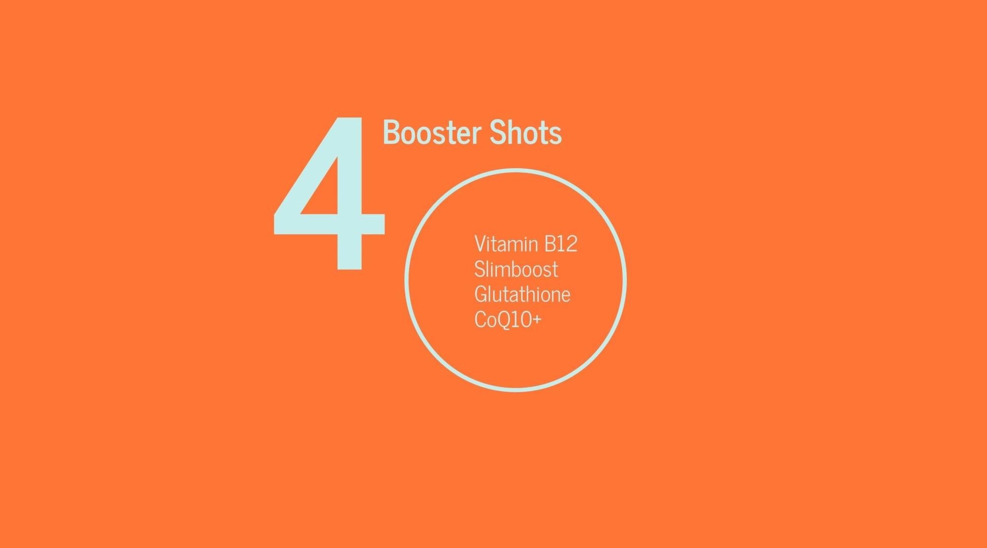 Support your weight loss goals with our Slimboost vitamin shot, carefully formulated to aid metabolism and energy levels, alongside a healthy diet and lifestyle.
